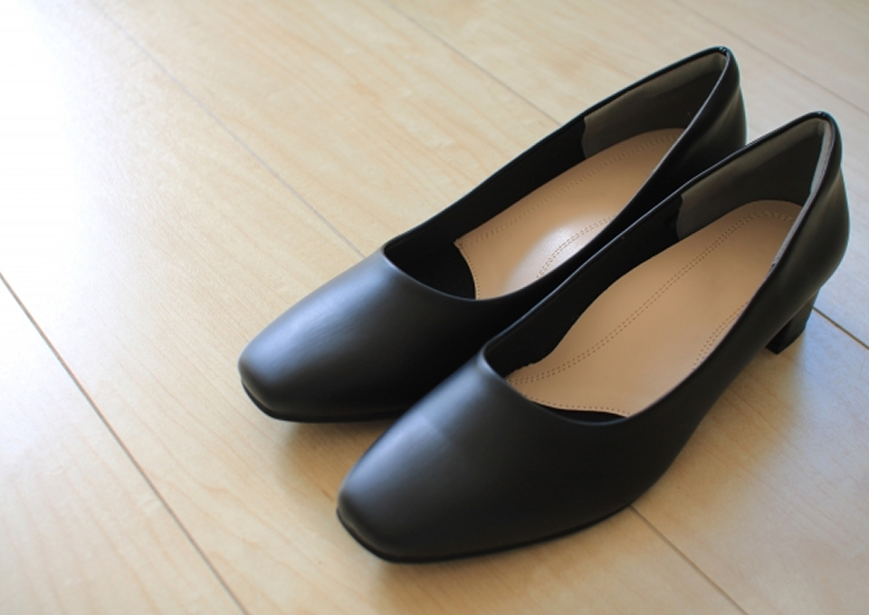 女性は黒でつや控えめのパンプスが無難で、かかとはおおむね2〜5cmが目安です。3〜4cm程度は安定感があり歩行音も抑えやすいので実用的です。極端に細いピンヒールや過度な装飾がある靴は避け、先が閉じた形を基本に選んでください。会場で脱ぎ履きがある場合は、ストラップ付きなど脱ぎ履きしやすいデザインが役立ちます。