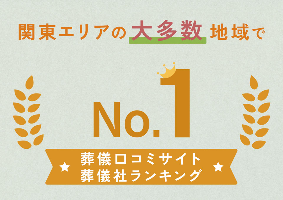 大手葬儀口コミサイトの関東多数エリアで、口コミランキング1位※を獲得しました。