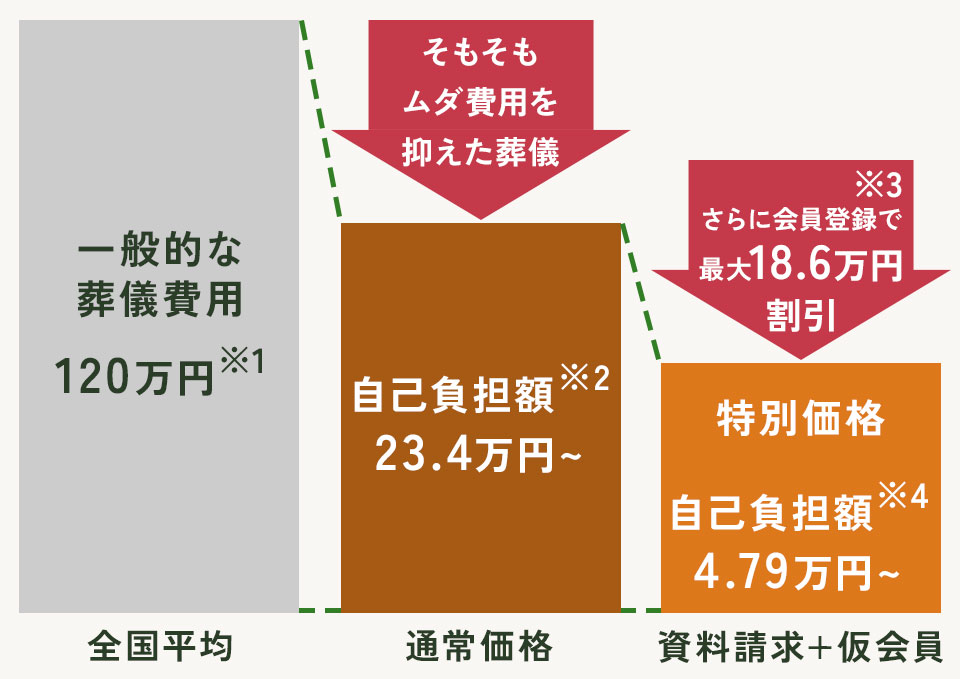 入会金(1万円)のお支払いは、葬儀のお打合せ時で構いません。仮会員登録はこちら。